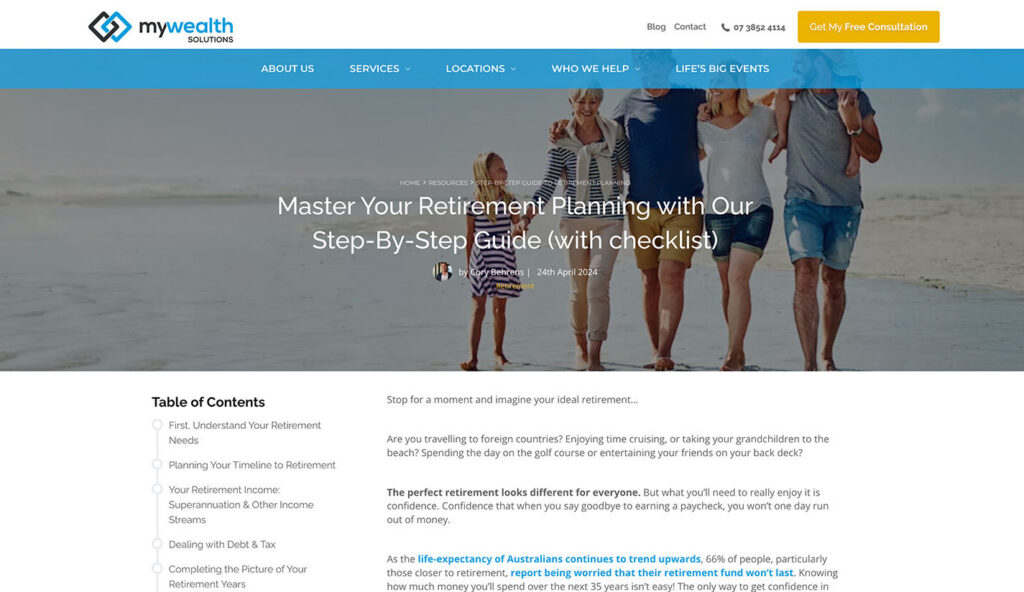 Achieving market leadership in Google search results for competitive financial planning keywords through strategic content marketing. Campaign secured multiple top 5 rankings using persona-targeted, high-value content creation.